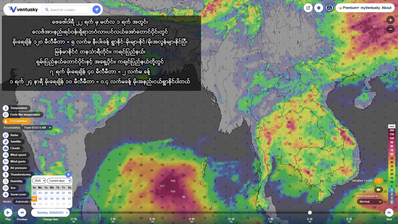 ဖေဖော်ဝါရီ ၂၃ ရက် မှ မတ်လ ၁ ရက်အထိ ၇ ရက်စာ မိုးလေဝသခန့်မှန်းချက်
