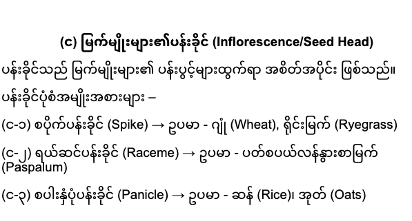 မြက်မျိုးအပင်များမှ ခွဲထွက်သွားသော နှံစားသီးနှံ (Cereal Crops) အမျိုးအစားများသည် လူ့သားတို့၏ အဓိကအစားအစာ ဖြစ်ပါသည်။