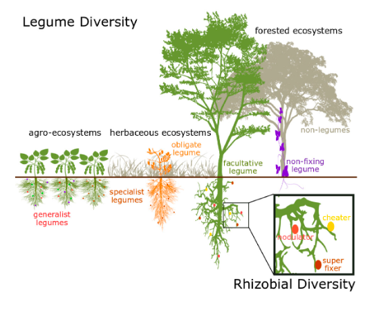 ပဲမျိုး (Legumes) များသည် ရိုက်ဇိုဘီယမ် ဘက်တီးရီးယား (Rhizobium Bacteria) နှင့် အပြန်အလှန် အကျိုးပြုဆက်သွယ်မှု (Symbiotic associations) ရှိသည်။