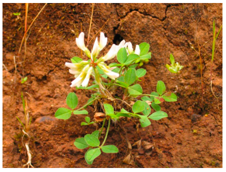 ပုံ - ၄ ကလိုဘာအဖြူ အပင်၊ အရွက်၊ အပွင့်များ
