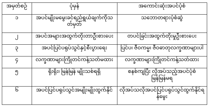 ဇယား - ၁ ပုံမှန်အပင်မွေးမြူရေးနှင့်အကောင်းဆုံးအပင်ပုံစံမွေးမြူရေးစနစ်