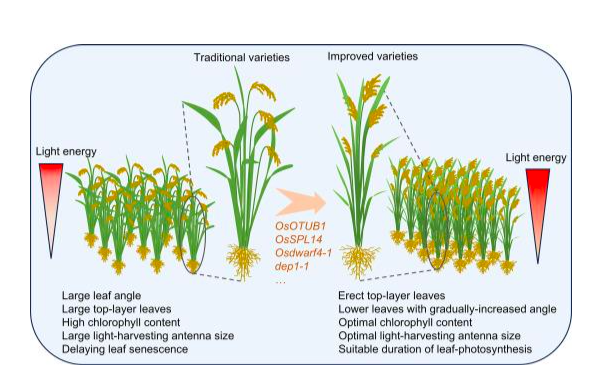 အရွက်များ၏ တည်နေရာ ပုံစံသည် အလင်းရောင်/နေရောင်ခြည် (Light/Solar Energy) ဖမ်းယူမှု စွမ်းရည် ကို အဆုံးအဖြတ် ပေးပါသည်။ သီးနှံအလိုက်၊ ဒေသရိုးရာမျိုးများတွင် အရွက်များမှာ အလျားလိုက် ဖြန့်နေသဖြင့် အပေါ်ဘက်အရွက်များက အလင်းရောင်ကို အကုန်ယူလိုက်ပြီး အောက်ဘက်အရွက်များမှာ အမှောင်ထဲတွင် ရှိနေသဖြင့် အပင် အတွက် အကျိုးမရှိဘဲ အားအင်ကိုသာ ကုန်ခမ်းစေပါသည်။