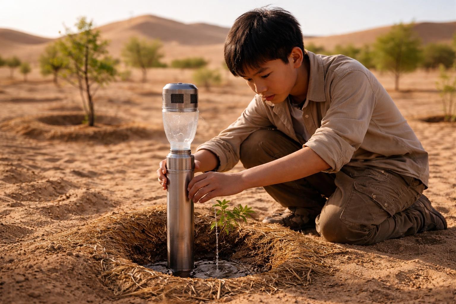 ဒီနည်းပညာဟာ ၂၀၂၄ ခုနှစ်အတွင်း တရုတ်နိုင်ငံမြောက်ပိုင်းရှိ သဘာဝပတ်ဝန်းကျင်အပေါ် အကျိုးသက်ရောက်မှု ကြီးမားသော ဖြေရှင်းချက်တစ်ခုအနေနဲ့ အရေးပါလာခဲ့ပါတယ်။ သဲကန္တာရဖြစ်ထွန်းလာမှု ပြဿနာနဲ့ ရင်ဆိုင်နေရတဲ့ Chifeng ဒေသက အသက် ၁၄ နှစ်အရွယ် ဆယ်ကျော်သက်လူငယ် Jia Mingxuan ဟာ လေထုစိုထိုင်းဆကနေ ရေထုတ်ယူပေးနိုင်တဲ့ အလိုအလျောက်ရေပေးစက်ကိရိယာ (Passive device) တစ်ခုကို တီထွင်ခဲ့ပါတယ်။ အဲ့ဒီနည်းပညာဟာ လျှပ်စစ်ဓာတ်အား၊ ရေစုပ်စက်များနဲ့ ရေလှောင်ကန်များ အသုံးပြုဖို့ရာ မလိုအပ်တာကြောင့် သုတေသီများ၊ ပတ်ဝန်းကျင်ထိန်းသိမ်းရေး နဲ့ သစ်တောပြန်လည်တည်ထောင်ရေး အာဏာပိုင်များအကြား ချက်ချင်းဆိုသလို စိတ်ဝင်စားမှု မြင့်တက်လာခဲ့တာ ဖြစ်ပါတယ်။