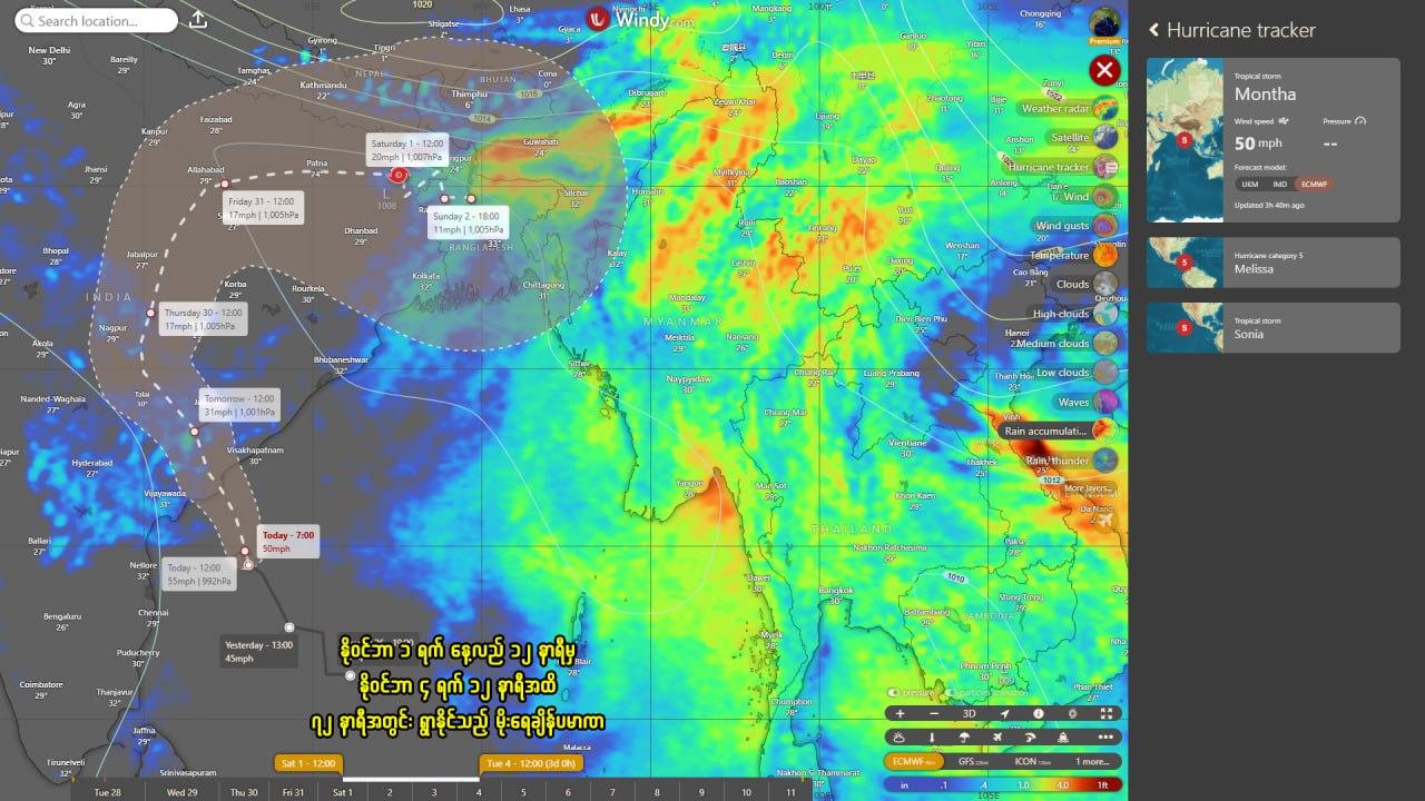နိုဝင်ဘာ ၁ ရက် နေ့လည် ၁၂ နာရီမှ နိုဝင်ဘာ ၄ ရက် နေ့လည် ၁၂ နာရီအထိ - ၇၂ နာရီ (၃ ရက်)အတွင်း ဆိုင်ကလုန်းမုန်တိုင်း MONTHA အကြွင်းအကျန်နှင့် ဘင်္ဂလားပင်လယ်အော်အရှေ့အလယ်ပိုင်းမှာ ဖြစ်လာမည့် လေပွေလှိုင်းတို့ရဲ့အရှိန်ကြောင့်