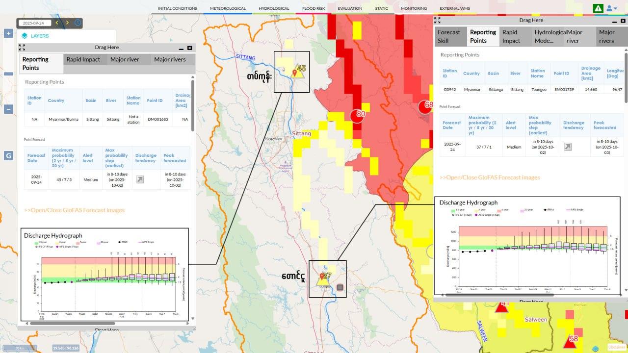 စက်တင်ဘာလ ၂၅ ရက် နေ့လည် ၁ နာရီ ၂၀ မိနစ်အချိန်ရရှိတဲ့ GloFAS system update အရ -