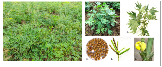 ပုံ - ၂ ဂျပန်ပဲနီလေး အပင်၊ အရွက်၊ ပန်းပွင့်၊ အတောင့်၊ အစေ့
