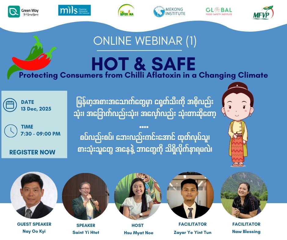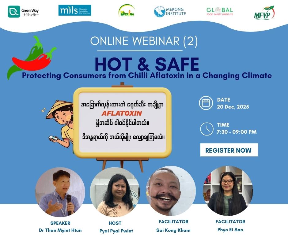 ငရုတ်သီးကို ဘေးကင်းစွာ ဝယ်ယူသိုလှောင်သိမ်းဆည်းနည်း၊ အခြောက်ခံ ကြိတ်ခွဲနည်းနဲ့ အသေးစား ထုတ်လုပ်သူ လုပ်ငန်းများအတွက် Alflatoxin မှို ကာကွယ်ထိန်းချုပ်ရေး နည်းလမ်းများကို ဆွေးနွေးရှင်းပြသွားဖို့အတွက်